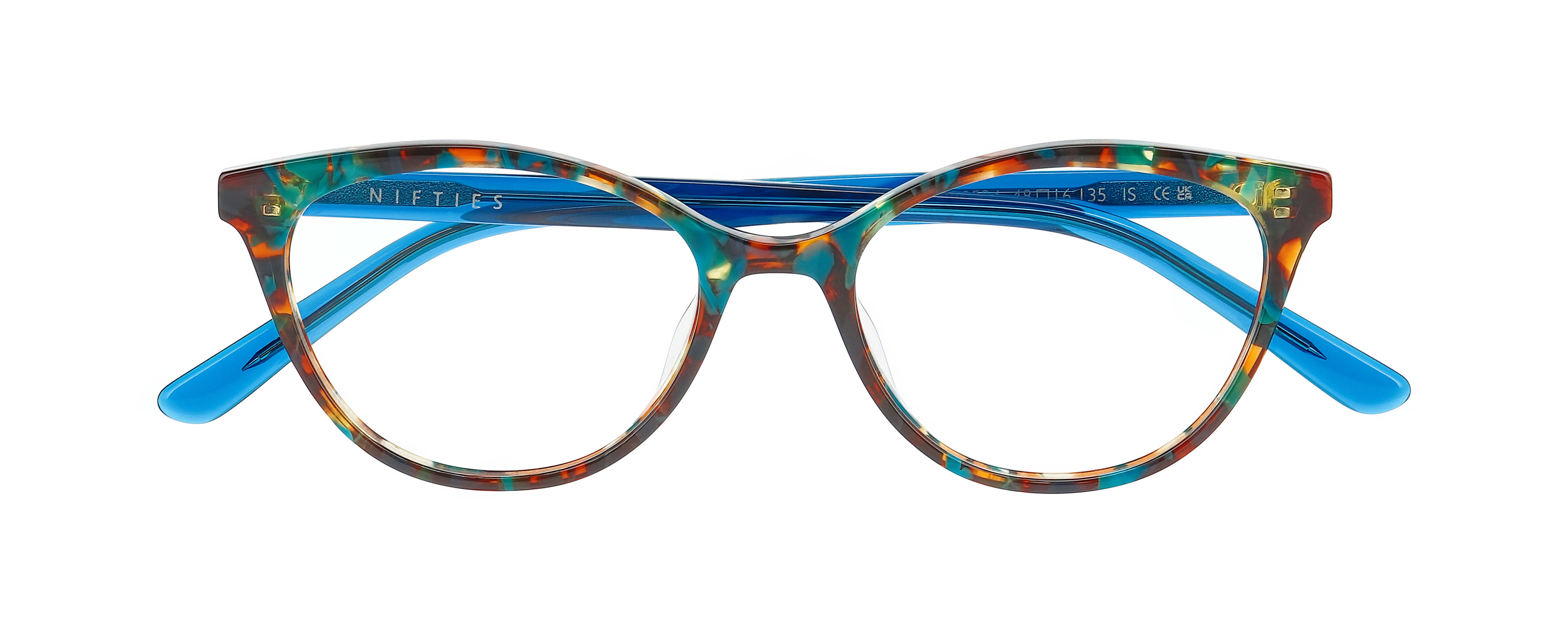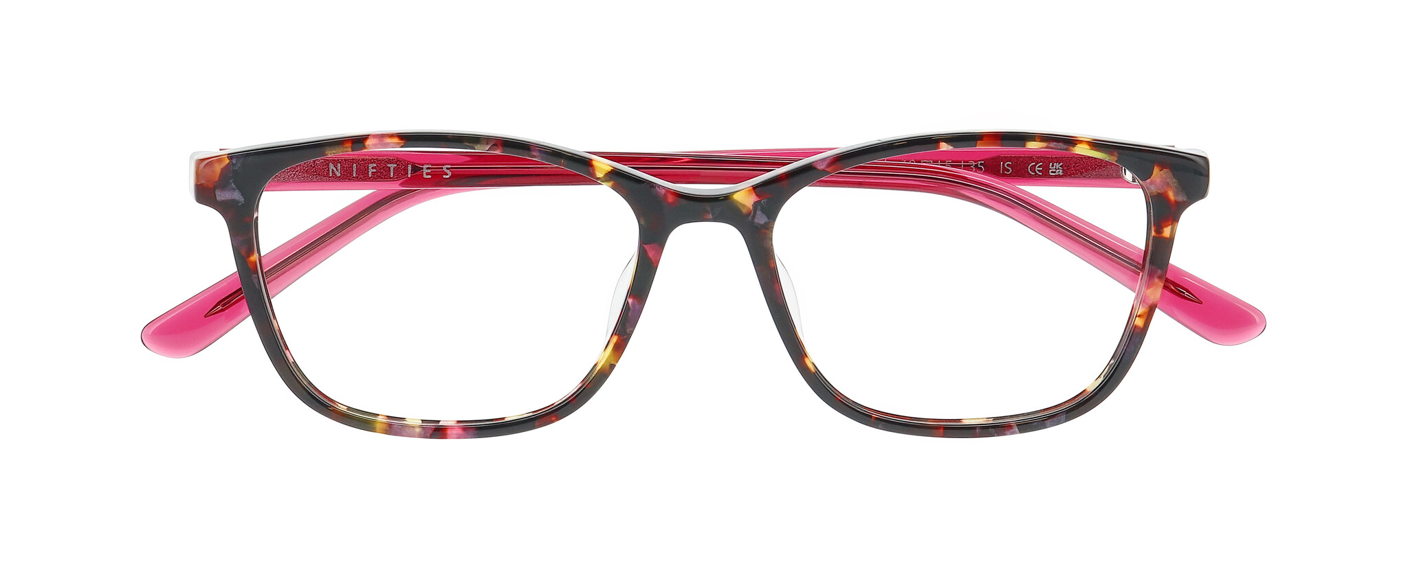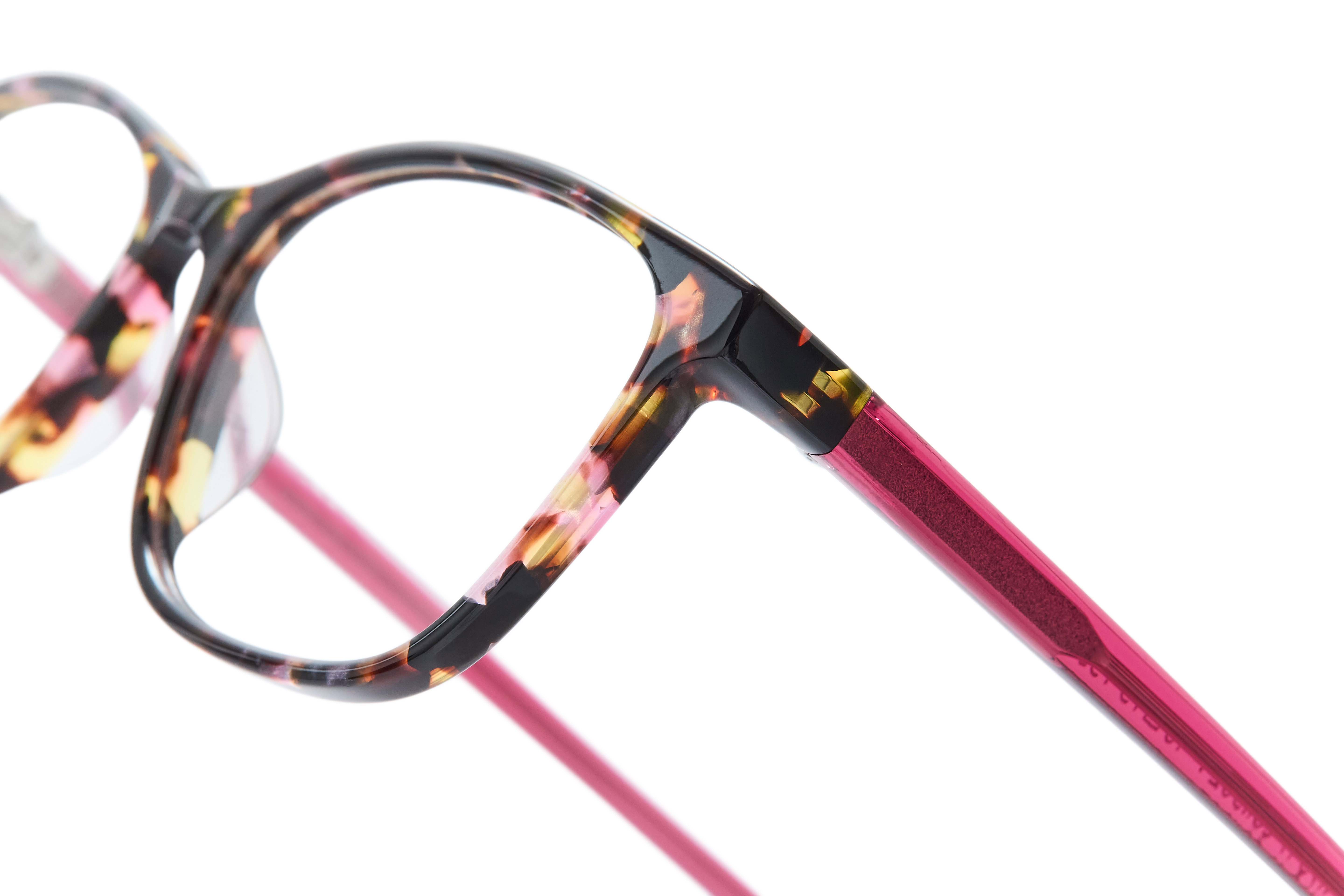 Chunky tort acetates in translucent multi colour torts play against colour pop vibrant temples and tip ends. A bolder style that still works for finer features and offers the same comfort and luxury feel that you would expect from Nifties.