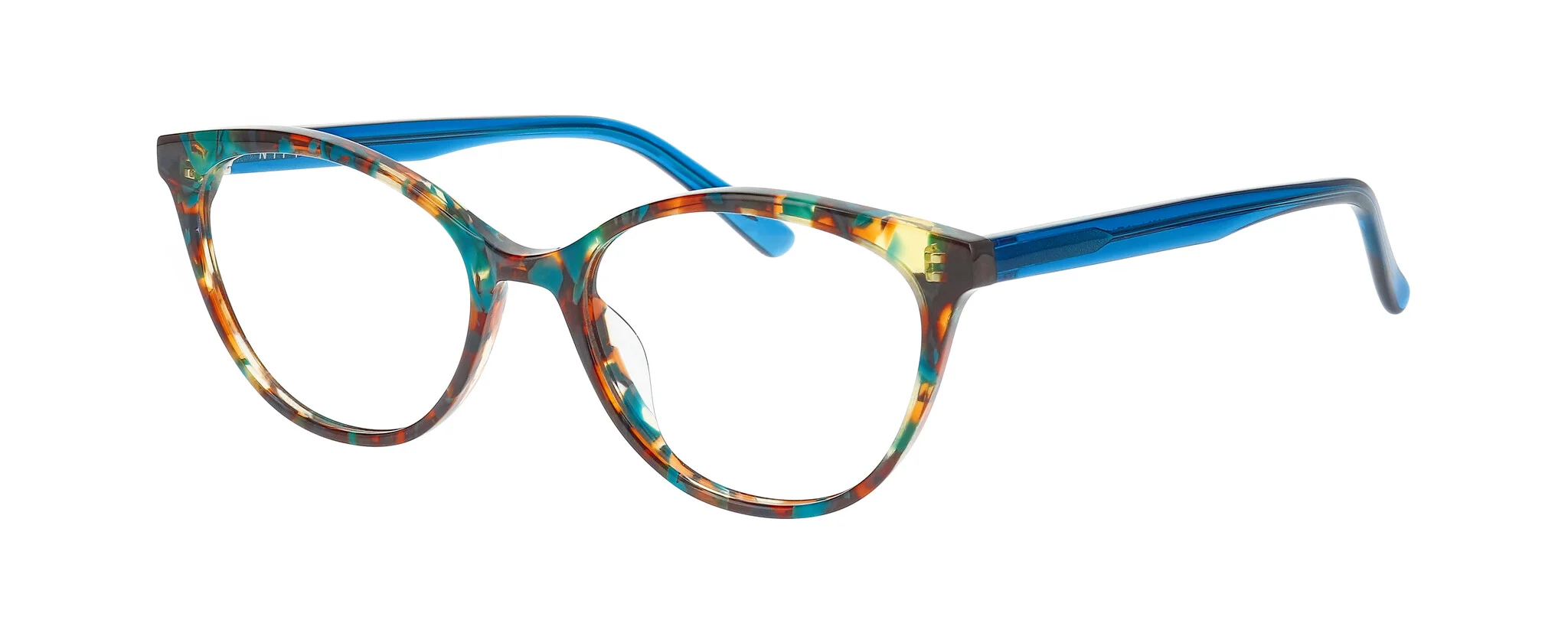 A duo of petite acetate styles designed with vibrant personality and effortless wearability. Featuring two timeless silhouettes — a commercial rounded shape and a subtle cat-eye, this concept brings playful sophistication to smaller faces. Vivid confetti torts and complementary crystal temples, blend bold expression with refined balance.
